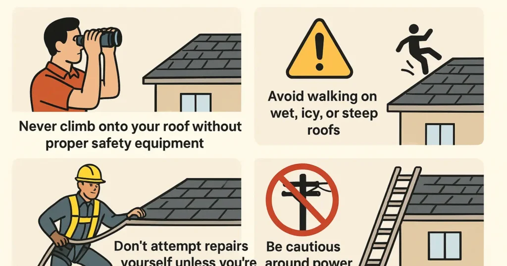 While it’s good to be proactive, roof inspections can be dangerous. Here are some critical safety tips: